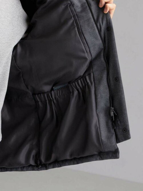 ベーシックでスタイリッシュなステレッチ仕様と顔周りの露出面積を減らし冷気を防げるドローコートとスピンドルをあしらったフードがポイントのひとつになっています。